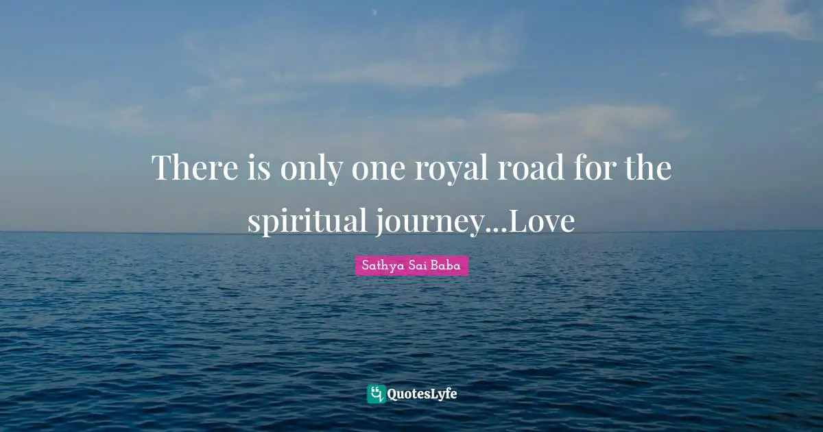 This page presents the quote "There is only one royal road for the spiritual journey...Love". Author of this quote is Sathya Sai Baba. This quote is about love, spiritual, spiritual journey, journey, royal,.
