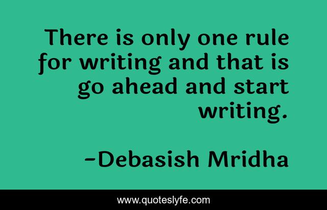 This page presents the quote "There is only one rule for writing and that is go ahead and start writing.". Author of this quote is Debasish Mridha. This quote is about life, debasish, mridha, philosophy, rule, writing, writer,.