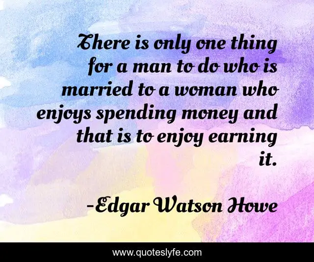 This page presents the quote "There is only one thing for a man to do who is married to a woman who enjoys spending money and that is to enjoy earning it.". Author of this quote is Edgar Watson Howe. .