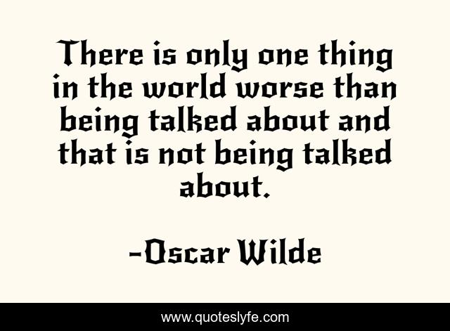 This page presents the quote "There is only one thing in the world worse than being talked about and that is not being talked about.". Author of this quote is Oscar Wilde. .