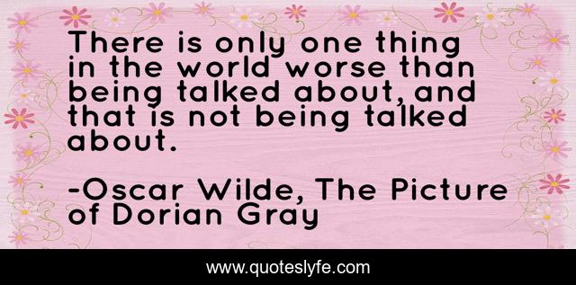 This page presents the quote "There is only one thing in the world worse than being talked about, and that is not being talked about.". Author of this quote is Oscar Wilde, The Picture of Dorian Gray. .