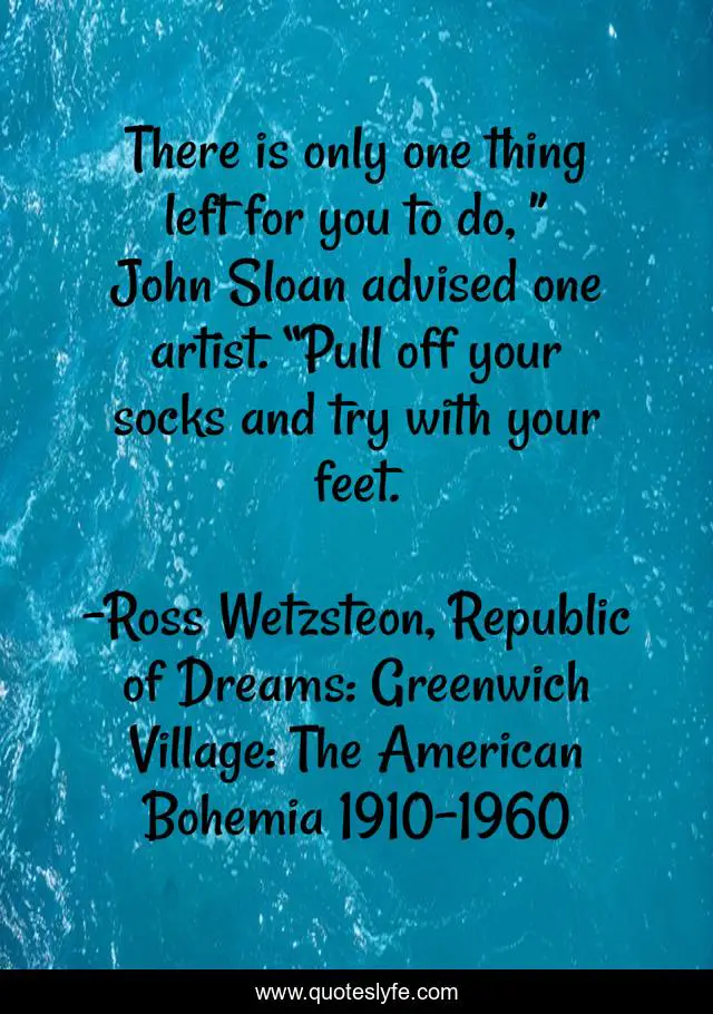 "Ross Wetzsteon, Republic of Dreams: Greenwich Village: The American Bohemia 1910-1960 Quotes." Quoteslyfe.com, 2025. Fri. 05 Dec. 2025. <https://www.quoteslyfe.com/quote/There-is-only-one-thing-left-for-65781>.