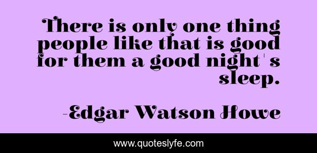 This page presents the quote "There is only one thing people like that is good for them a good night's sleep.". Author of this quote is Edgar Watson Howe. .