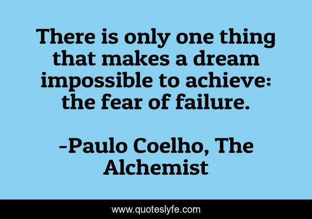 This page presents the quote "There is only one thing that makes a dream impossible to achieve: the fear of failure.". Author of this quote is Paulo Coelho, The Alchemist. This quote is about failure, fear, achievement, dreams,.