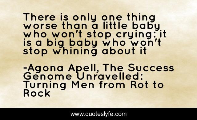This page presents the quote "There is only one thing worse than a little baby who won't stop crying: it is a big baby who won't stop whining about it". Author of this quote is Agona Apell, The Success Genome Unravelled: Turning Men from Rot to Rock. This quote is about motherhood, parenting, children, family, babies,.