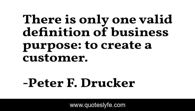 This page presents the quote "There is only one valid definition of business purpose: to create a customer.". Author of this quote is Peter F. Drucker. This quote is about customer, entrepreneur, business,.