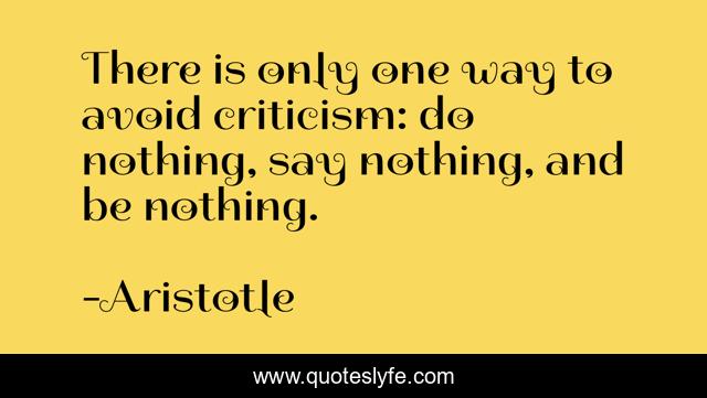 This page presents the quote "There is only one way to avoid criticism: do nothing, say nothing, and be nothing.". Author of this quote is Aristotle. This quote is about criticism, philosophers, life, wisdom,.