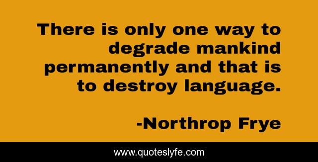 This page presents the quote "There is only one way to degrade mankind permanently and that is to destroy language.". Author of this quote is Northrop Frye. This quote is about words, language,.