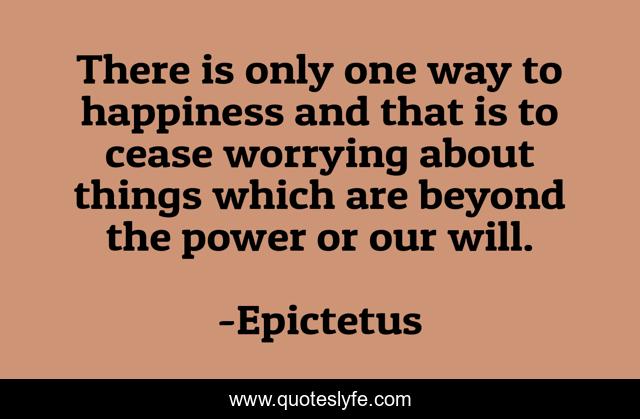This page presents the quote "There is only one way to happiness and that is to cease worrying about things which are beyond the power or our will.". Author of this quote is Epictetus. This quote is about way-to-be, happiness,.