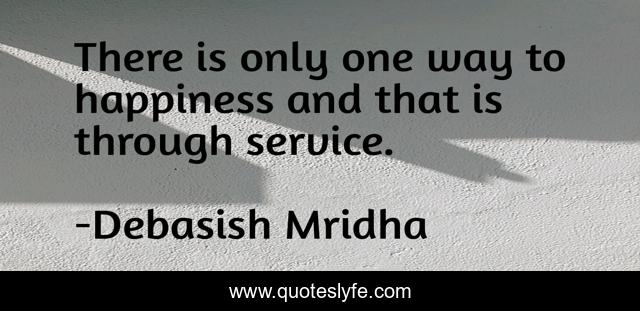 This page presents the quote "There is only one way to happiness and that is through service.". Author of this quote is Debasish Mridha. This quote is about life, love, knowledge, service, inspirational, intelligence, philosophy, wisdom, affection,.