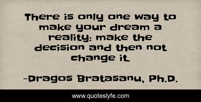 This page presents the quote "There is only one way to make your dream a reality: make the decision and then not change it.". Author of this quote is Dragos Bratasanu, Ph.D.. This quote is about educational, decision, life, dreams-come-true, follow-your-dreams, inspirational, enthusiasm, dreams,.