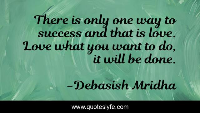 This page presents the quote "There is only one way to success and that is love. Love what you want to do, it will be done.". Author of this quote is Debasish Mridha. This quote is about life, love, knowledge, inspirational, intelligence, philosophy, wisdom, quotes, affection,.