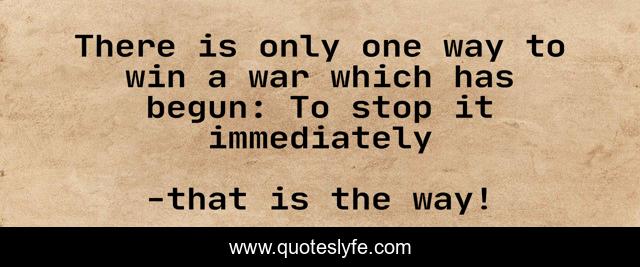 This page presents the quote "There is only one way to win a war which has begun: To stop it immediately". Author of this quote is that is the way!. .