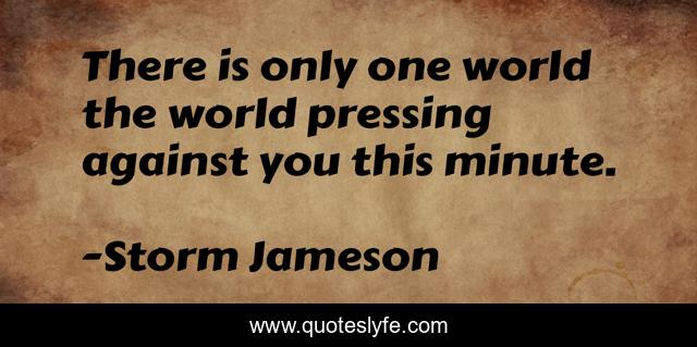 This page presents the quote "There is only one world the world pressing against you this minute.". Author of this quote is Storm Jameson. This quote is about world, life,.