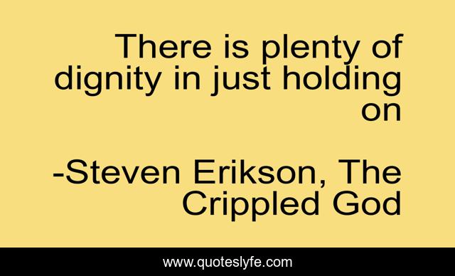 This page presents the quote "There is plenty of dignity in just holding on". Author of this quote is Steven Erikson, The Crippled God. .