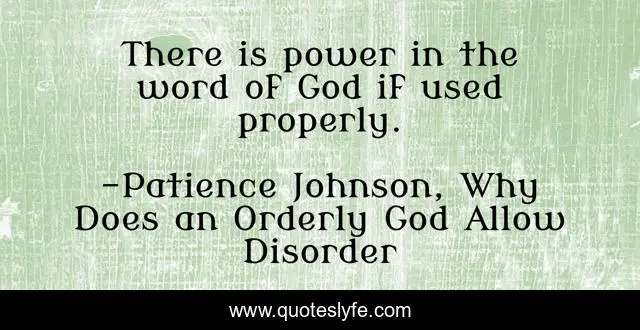 "Patience Johnson, Why Does an Orderly God Allow Disorder Quotes." Quoteslyfe.com, 2025. Fri. 05 Dec. 2025. <https://www.quoteslyfe.com/quote/There-is-power-in-the-word-of-20595>.