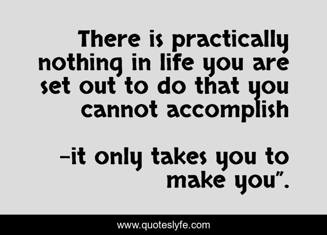 This page presents the quote "There is practically nothing in life you are set out to do that you cannot accomplish". Author of this quote is it only takes you to make you”.. .