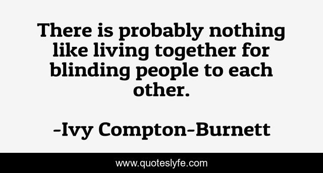 This page presents the quote "There is probably nothing like living together for blinding people to each other.". Author of this quote is Ivy Compton-Burnett. This quote is about men, women,.