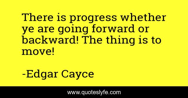 This page presents the quote "There is progress whether ye are going forward or backward! The thing is to move!". Author of this quote is Edgar Cayce. This quote is about forward, progress, going,.