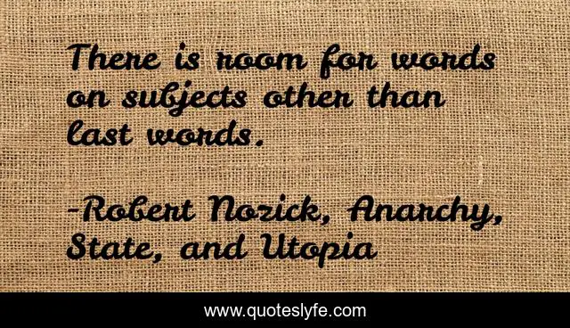 This page presents the quote "There is room for words on subjects other than last words.". Author of this quote is Robert Nozick, Anarchy, State, and Utopia. This quote is about political-science, liberalism, logic,.