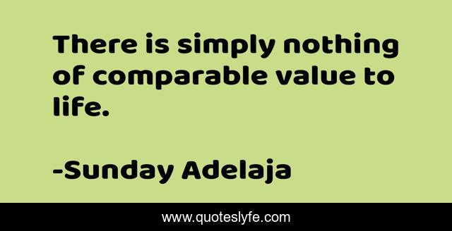 This page presents the quote "There is simply nothing of comparable value to life.". Author of this quote is Sunday Adelaja. This quote is about nothing, comparable, simply, life, value,.