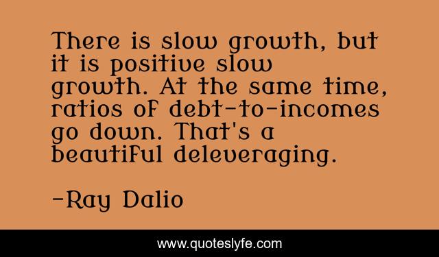 This page presents the quote "There is slow growth, but it is positive slow growth. At the same time, ratios of debt-to-incomes go down. That's a beautiful deleveraging.". Author of this quote is Ray Dalio. This quote is about beautiful, growth, time,.