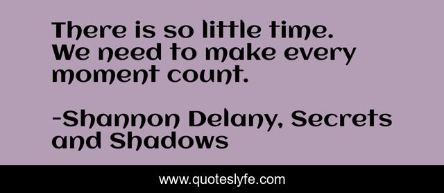 This page presents the quote "There is so little time. We need to make every moment count.". Author of this quote is Shannon Delany, Secrets and Shadows. This quote is about life, love, special, affection, time,.