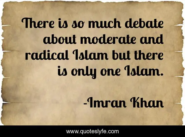 This page presents the quote "There is so much debate about moderate and radical Islam but there is only one Islam.". Author of this quote is Imran Khan. .