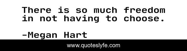 This page presents the quote "There is so much freedom in not having to choose.". Author of this quote is Megan Hart. This quote is about freedom, choice,.
