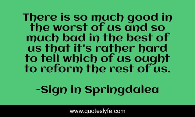 This page presents the quote "There is so much good in the worst of us and so much bad in the best of us that it's rather hard to tell which of us ought to reform the rest of us.". Author of this quote is Sign in Springdalea. This quote is about giving, goodness,.