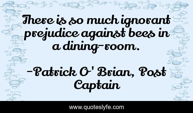 This page presents the quote "There is so much ignorant prejudice against bees in a dining-room.". Author of this quote is Patrick O'Brian, Post Captain. .