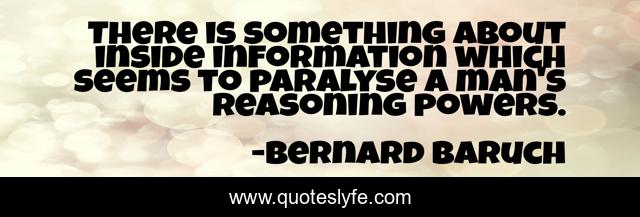 This page presents the quote "There is something about inside information which seems to paralyse a man's reasoning powers.". Author of this quote is Bernard Baruch. This quote is about information, seems, man,.