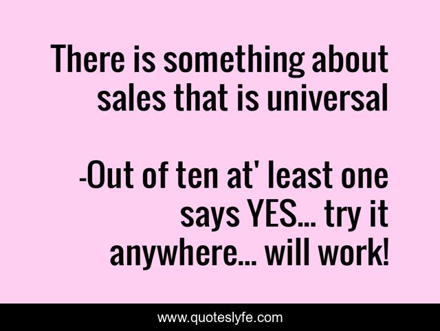 This page presents the quote "There is something about sales that is universal". Author of this quote is Out of ten at' least one says YES... try it anywhere... will work!. .