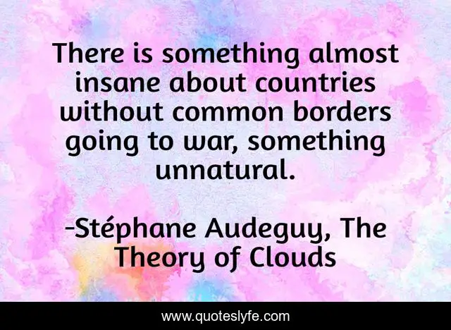This page presents the quote "There is something almost insane about countries without common borders going to war, something unnatural.". Author of this quote is Stéphane Audeguy, The Theory of Clouds. This quote is about unnatural, war,.