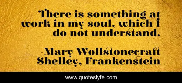 This page presents the quote "There is something at work in my soul, which I do not understand.". Author of this quote is Mary Wollstonecraft Shelley, Frankenstein. This quote is about frankenstein, horror, gothic, mary-shelley,.