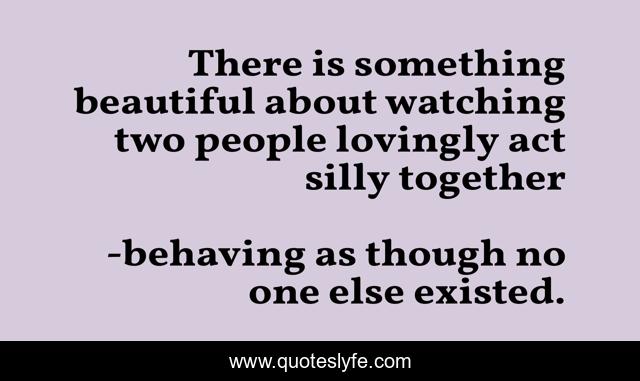 This page presents the quote "There is something beautiful about watching two people lovingly act silly together". Author of this quote is behaving as though no one else existed.. This quote is about steve maraboli, unapologetically you: reflections on life and the human experience,.