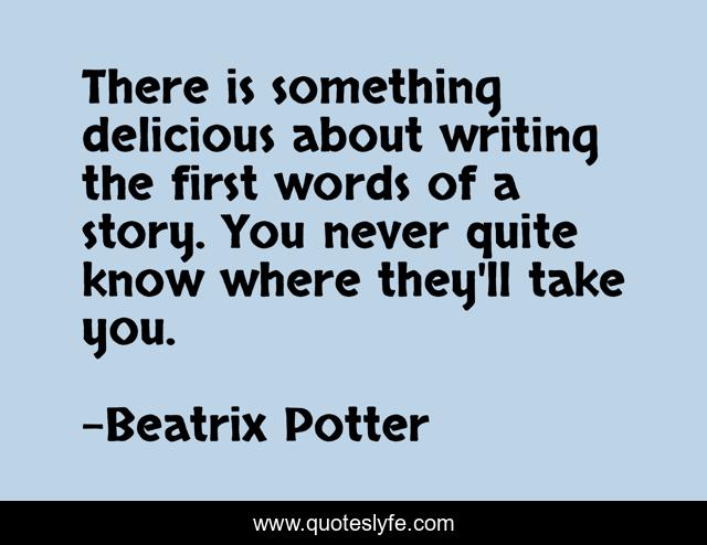 This page presents the quote "There is something delicious about writing the first words of a story. You never quite know where they'll take you.". Author of this quote is Beatrix Potter. .