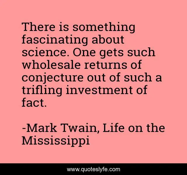 "Mark Twain, Life on the Mississippi Quotes." Quoteslyfe.com, 2025. Sat. 06 Dec. 2025. <https://www.quoteslyfe.com/quote/There-is-something-fascinating-about-science-One-7471>.