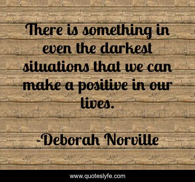 This page presents the quote "There is something in even the darkest situations that we can make a positive in our lives.". Author of this quote is Deborah Norville. This quote is about darkest, something,.