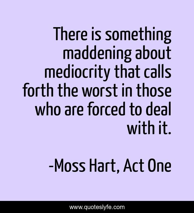 "Moss Hart, Act One Quotes." Quoteslyfe.com, 2025. Sat. 06 Dec. 2025. <https://www.quoteslyfe.com/quote/There-is-something-maddening-about-mediocrity-that-221032>.