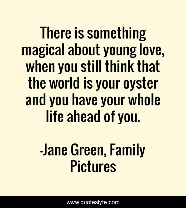 This page presents the quote "There is something magical about young love, when you still think that the world is your oyster and you have your whole life ahead of you.". Author of this quote is Jane Green, Family Pictures. This quote is about life, fraud, love, family, betrayal, bigamy, husband, affection,.