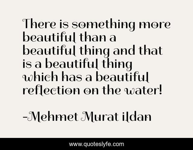 This page presents the quote "There is something more beautiful than a beautiful thing and that is a beautiful thing which has a beautiful reflection on the water!". Author of this quote is Mehmet Murat ildan. This quote is about beautiful, reflection, ildan-wise-sayings,.