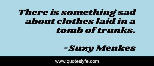 This page presents the quote "There is something sad about clothes laid in a tomb of trunks.". Author of this quote is Suzy Menkes. This quote is about laid, something, clothes,.