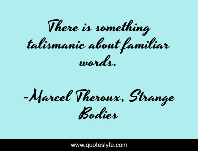 This page presents the quote "There is something talismanic about familiar words.". Author of this quote is Marcel Theroux, Strange Bodies. This quote is about words, talismanic,.