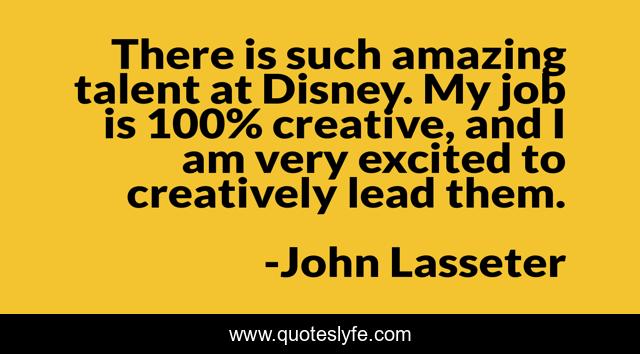 This page presents the quote "There is such amazing talent at Disney. My job is 100% creative, and I am very excited to creatively lead them.". Author of this quote is John Lasseter. This quote is about job, creative,.