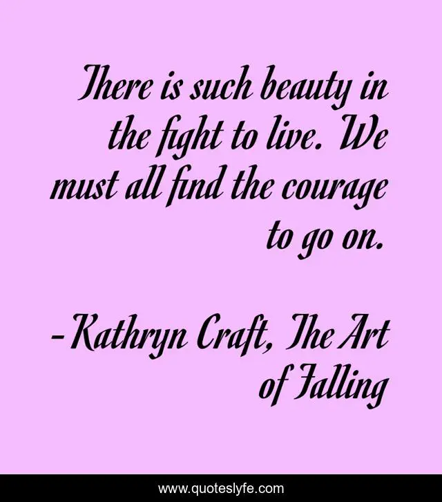 This page presents the quote "There is such beauty in the fight to live. We must all find the courage to go on.". Author of this quote is Kathryn Craft, The Art of Falling. This quote is about life, fight, sickness,.