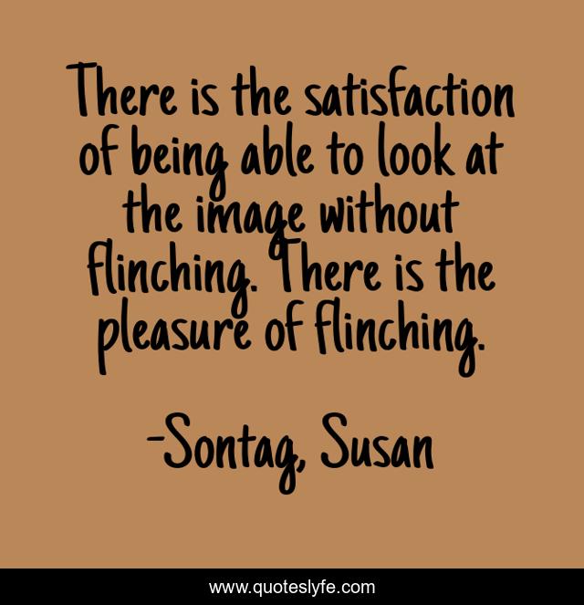 This page presents the quote "There is the satisfaction of being able to look at the image without flinching. There is the pleasure of flinching.". Author of this quote is Sontag, Susan. This quote is about photography, art, voyeurism,.