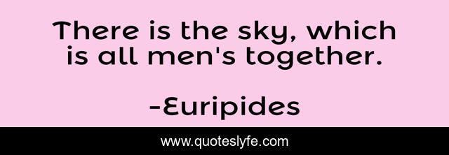 This page presents the quote "There is the sky, which is all men's together.". Author of this quote is Euripides. This quote is about men, sky, together,.
