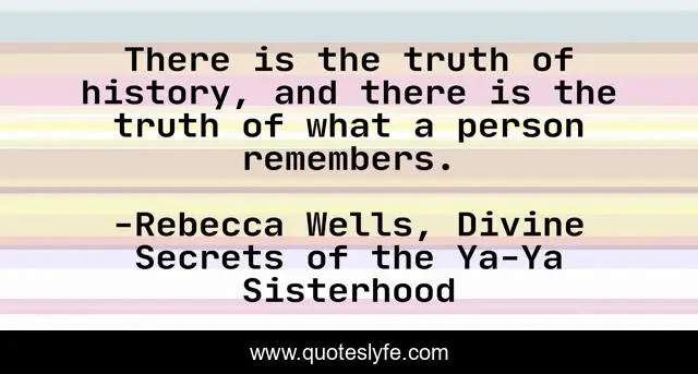 "Rebecca Wells, Divine Secrets of the Ya-Ya Sisterhood Quotes." Quoteslyfe.com, 2025. Sat. 06 Dec. 2025. <https://www.quoteslyfe.com/quote/There-is-the-truth-of-history-and-164296>.