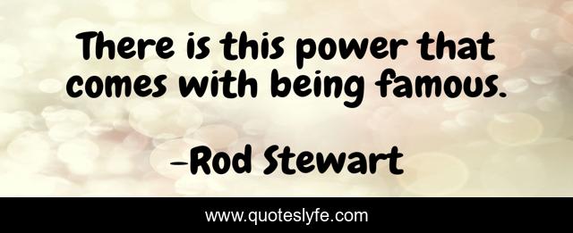 This page presents the quote "There is this power that comes with being famous.". Author of this quote is Rod Stewart. This quote is about being famous, being, power,.